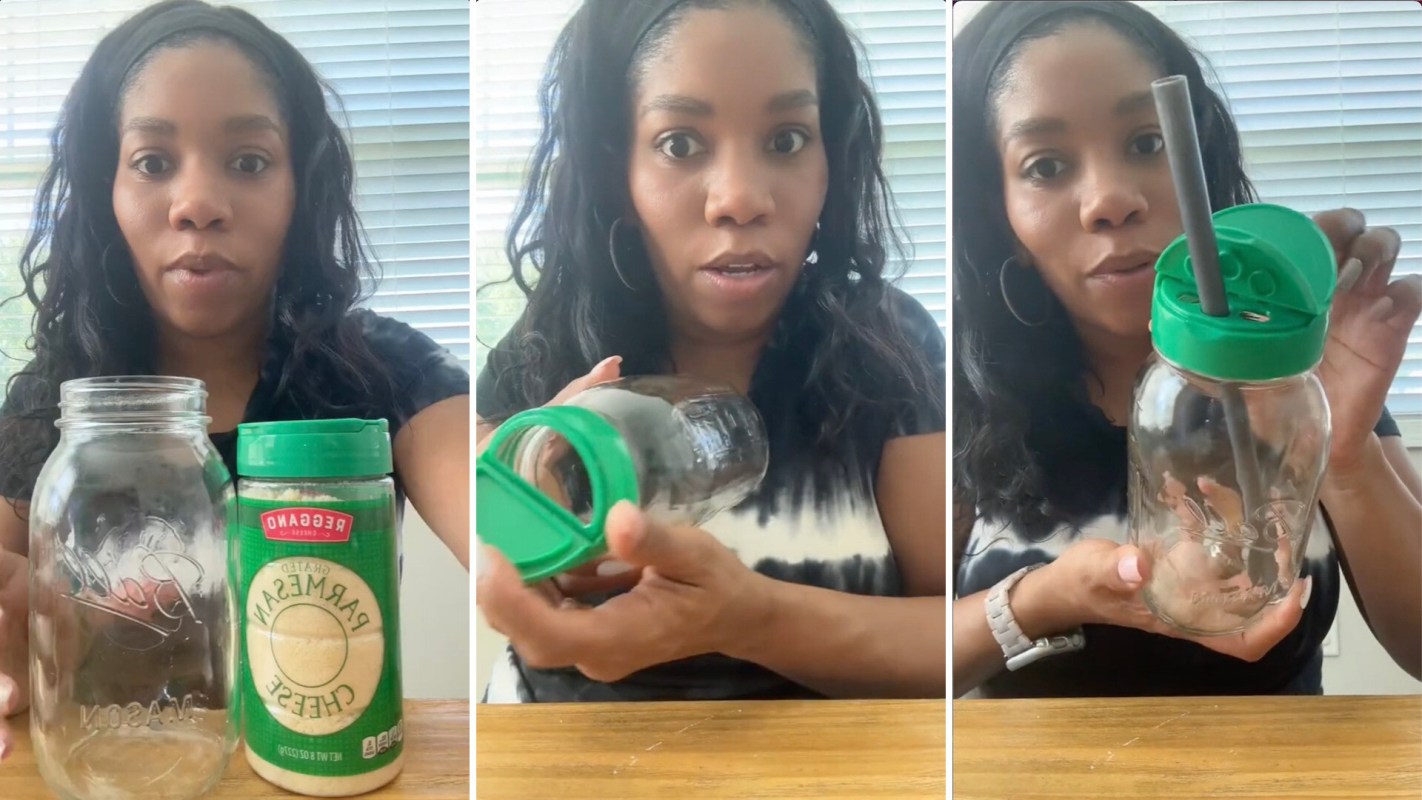 "The tops fit perfectly … perfectly on these Mason jars," a decades-long popular storage solution for food. Some people also use them for smoothies and other beverages, but the typical canning lids may be inconvenient for easy drinking. That's where Parmesan cheese comes in.