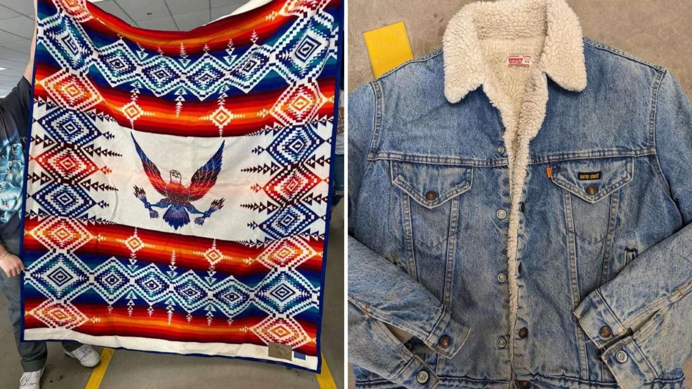 In a viral Reddit post, the user shares photos of their thrift store haul. They found Carhartt pants, a two-tone Patagonia vest, and a Levi's lined denim jacket. This Redditor even hit the thrifting jackpot with a rare find: a vintage Pendleton Woolen Mills blanket from 1977.