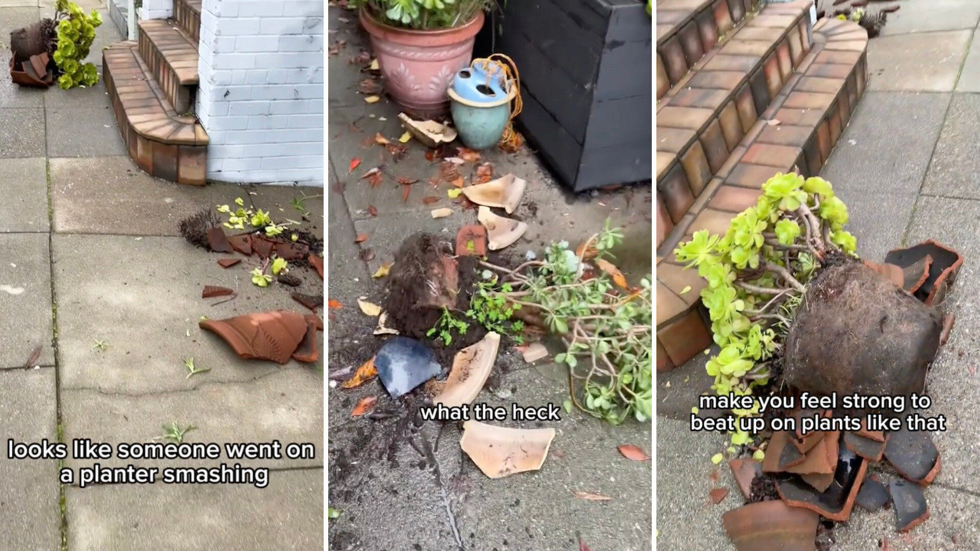 On TikTok, gardening influencer Mr. Bloom (@sfinbloom) shared footage of the aftermath of a planter-smashing rampage that terrorized his city block.