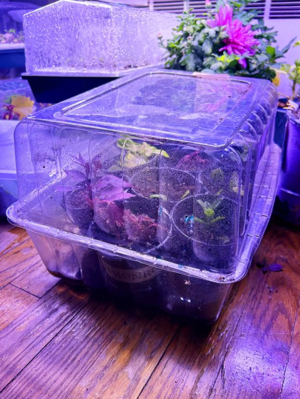 "I just reached out to my Buy Nothing group asking for plastic cake lids," they explained. "I know it sounds crazy but these things make the best mini greenhouses for seedling that outgrow the seed starter trays."