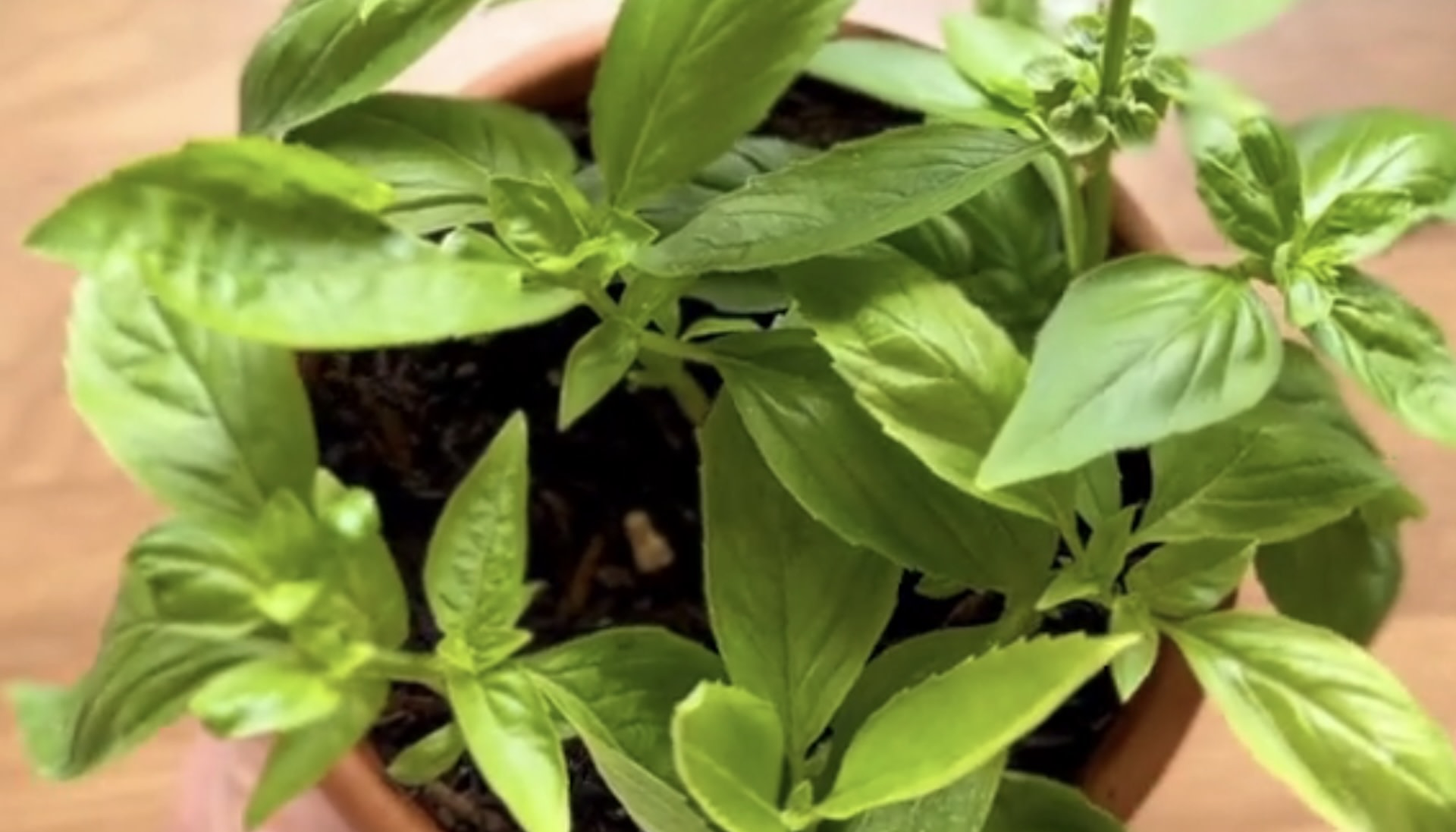 After the roots are grown, she plants the sprouting plant in fertilized soil. Eventually, the stems sprout into full-grown basil plants.