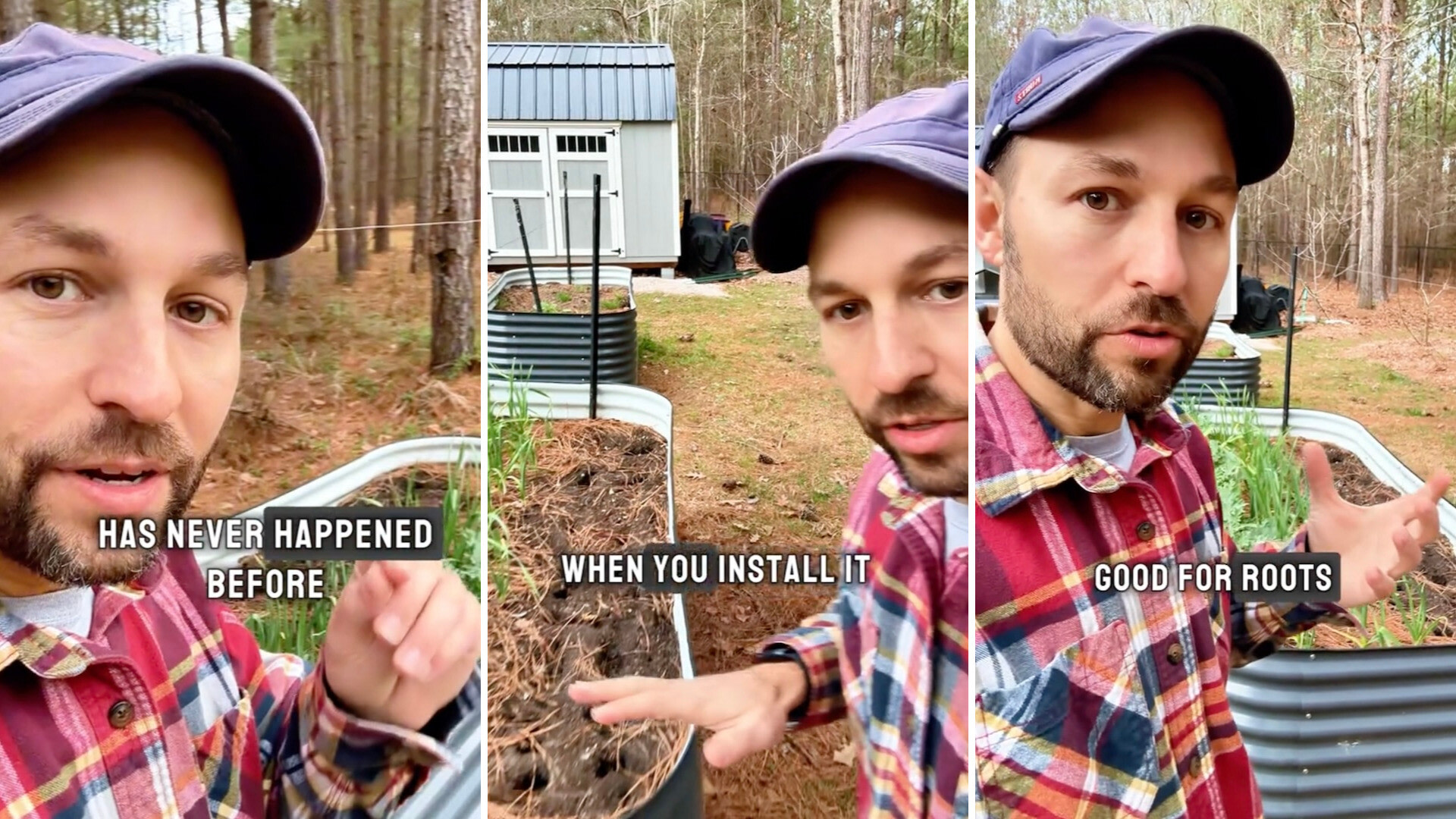 "I put these raised planter beds in several years ago, and they are quite tall," he shared, gesturing to a metal planter appearing to be roughly three feet in height. "And something happened that has never happened before."