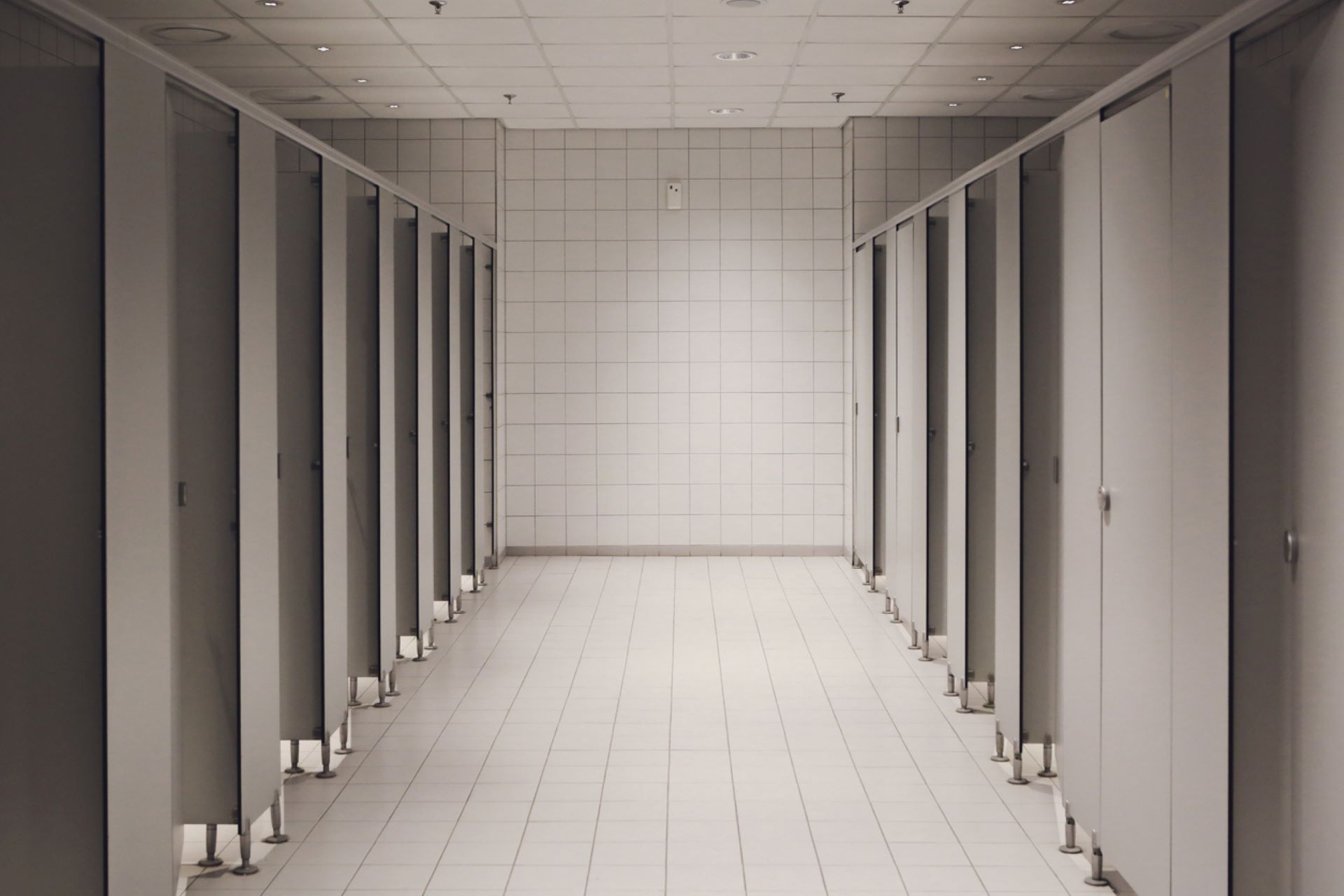 The images revealed six sinks with four large LCD screens on the wall above them.