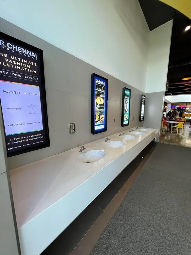 The two shots, posted in r/ABoringDystopia last year, show a handwashing counter next to a food court in Chennai. "Ads have replaced mirrors at the local mall," the poster wrote.