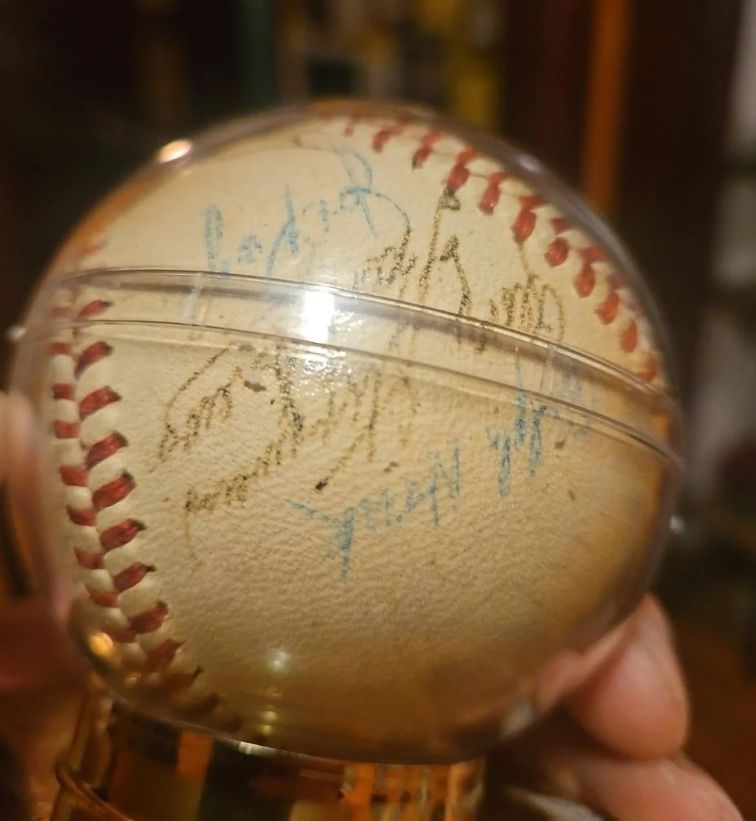 The original poster explained that they were killing time in an antique store when they noticed a case filled with baseball memorabilia. They found a baseball signed by several members of the 1947 New York Yankees team and purchased it for $200.