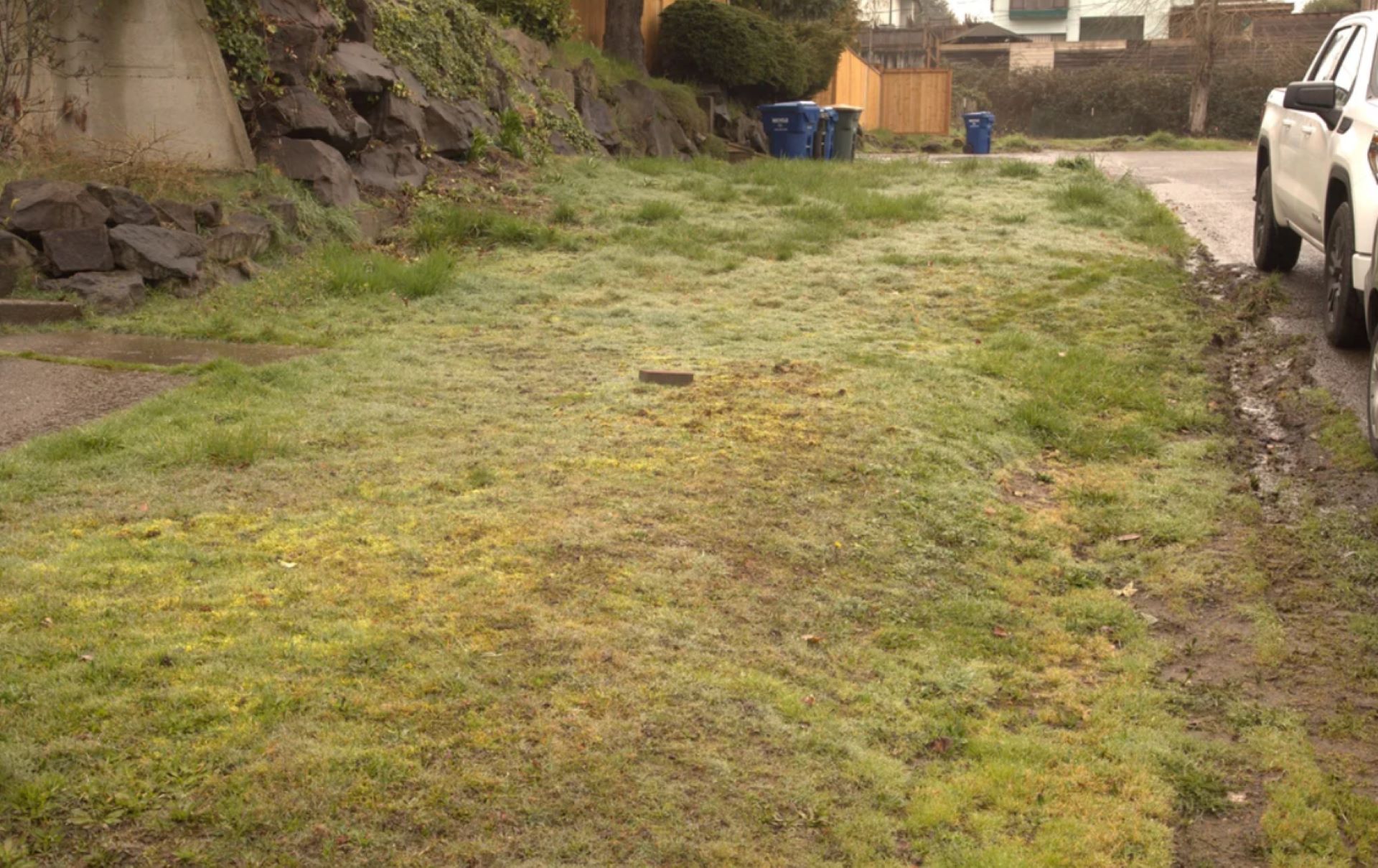 A groundskeeping enthusiast sparked discussion after sharing before-and-after images of an eco-landscaping job on the No Lawns subreddit. The photos demonstrate how a workers' cooperative replaced a grassy portion of roadside nature strip in Seattle with native plants and rocky ground cover.