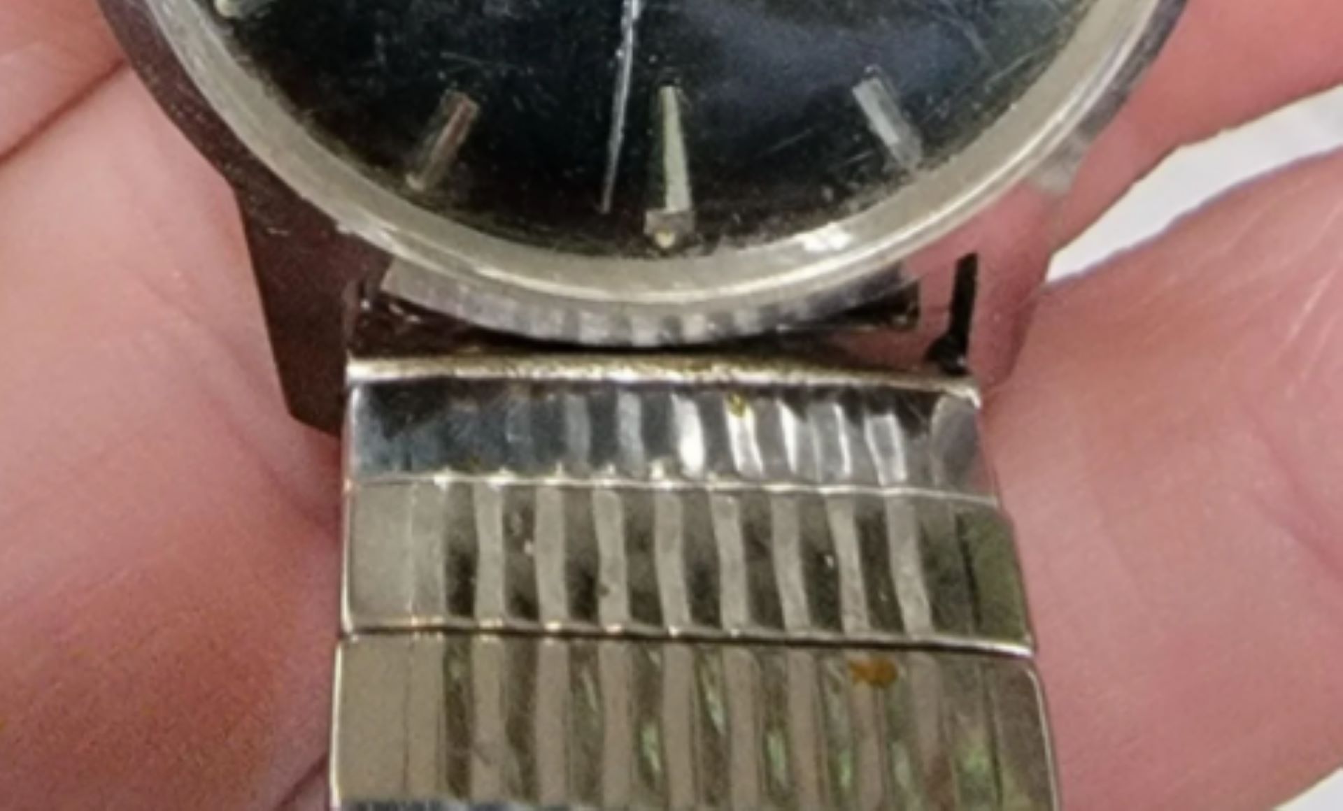 The watch appears to house a Swiss Elgin ebauche movement, likely dating between 1964 and 1967, according to commenters who chimed in with expertise. While not a high-end collectible, the stainless-steel case and clean black dial make it a standout — especially given its bargain price.