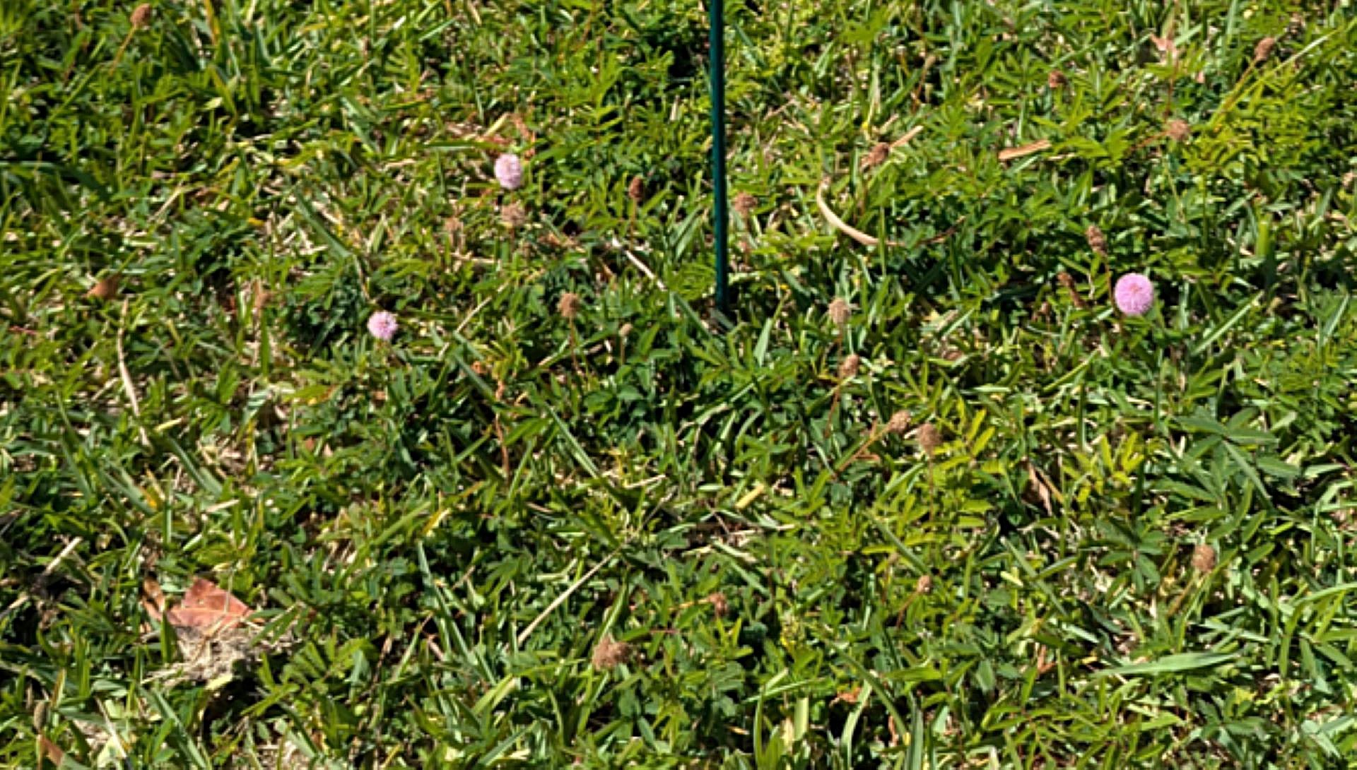 "Unfortunately for the HOA and fortunately for bees, butterflies, and other pollinators, these are not weeds but a native Florida plant called 'Sunshine Mimosa.' They bloom these amazing little purple puffballs," the homeowner said.