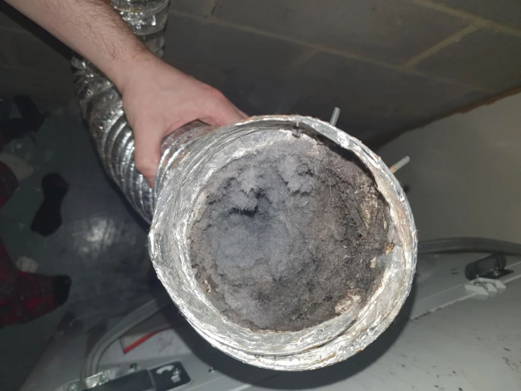 Even so, this poster's claim seems especially serious. "Moved into a new place and the clothes wouldn't dry," the poster says before sharing a photo of the back of their dryer. The duct has been removed to show that the entire vent is clogged with matted lint and debris.