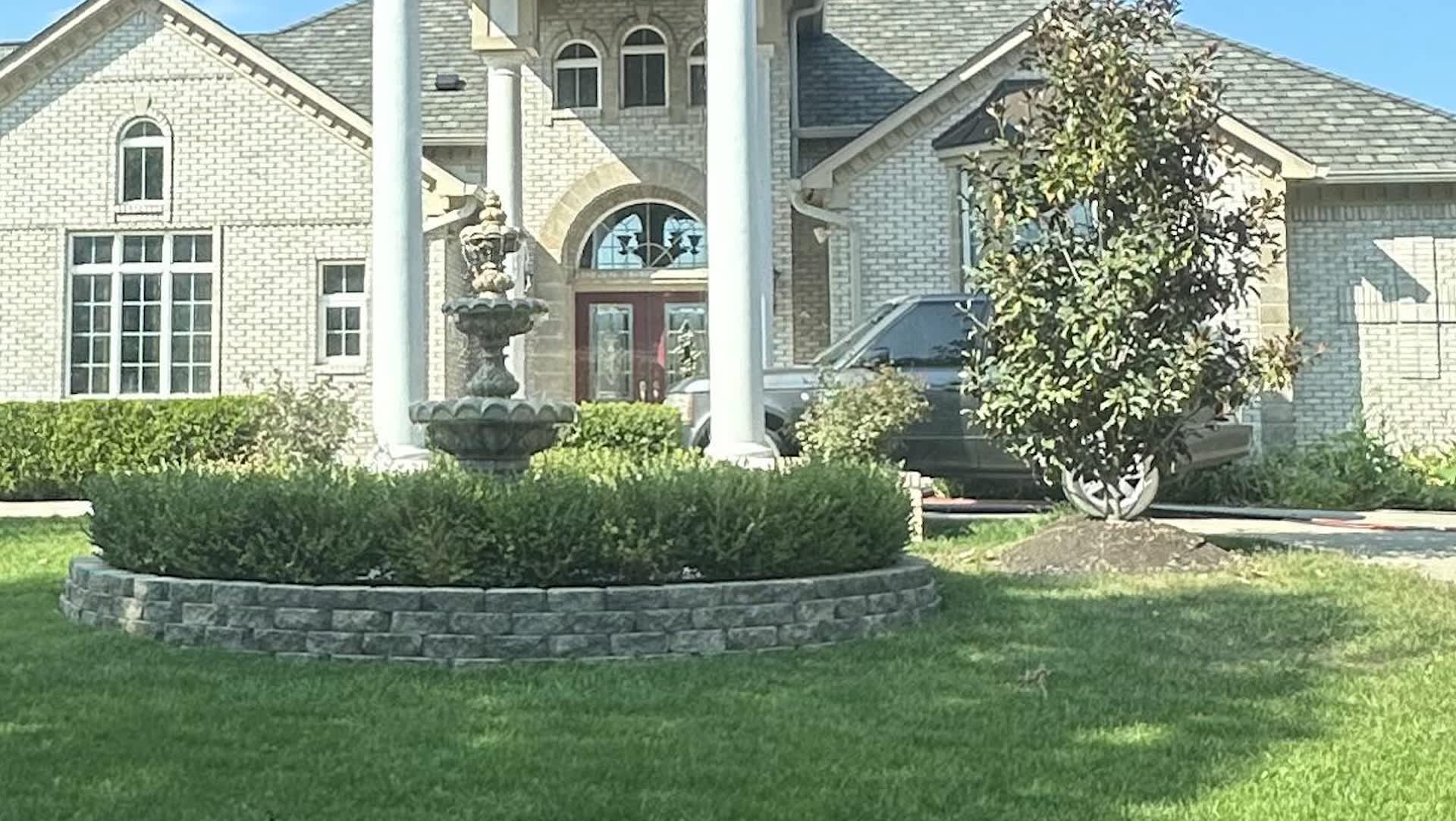 The attached image shows a large house with high columns, a half-circle driveway that's hundreds of feet long but only coverage for one car, a three-car garage, high ceilings, and a large grass lawn.