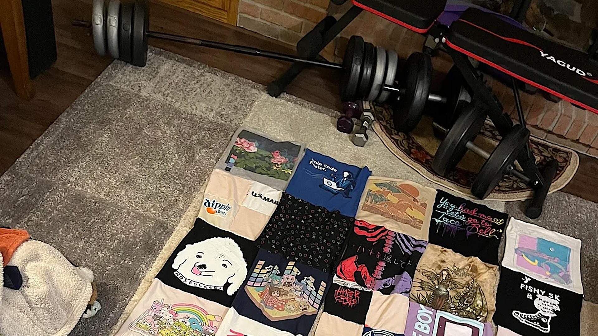 As for the quilt, it was a crowd-pleaser on the subreddit. A "Dumb of Ass" T-shirt got a couple of shoutouts, while another user praised the OP's concept overall by writing that "it's like the T-shirt wall at Hot Topic" and that they "love it."