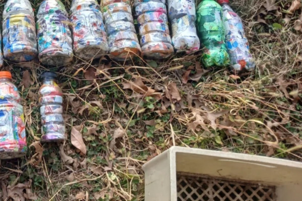 In the comments, they further explained their process, which involved stuffing "soft plastics," aka grocery bags, candy wrappers, Ziploc bags, and other pieces of trash that are free from food or paper, or "anything else that can rot," into harder plastic bottles.