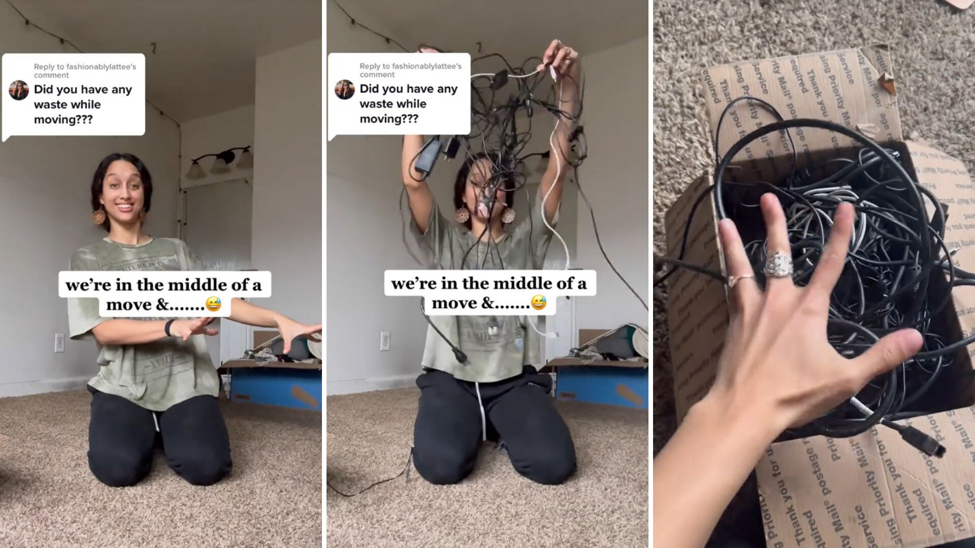 "We're in the middle of a move, and I just keep finding cord after cord after cord," she says. "Since electronics are considered prohibited waste, meaning you can't just toss them away in the trash, I will instead be responsibly recycling them."
