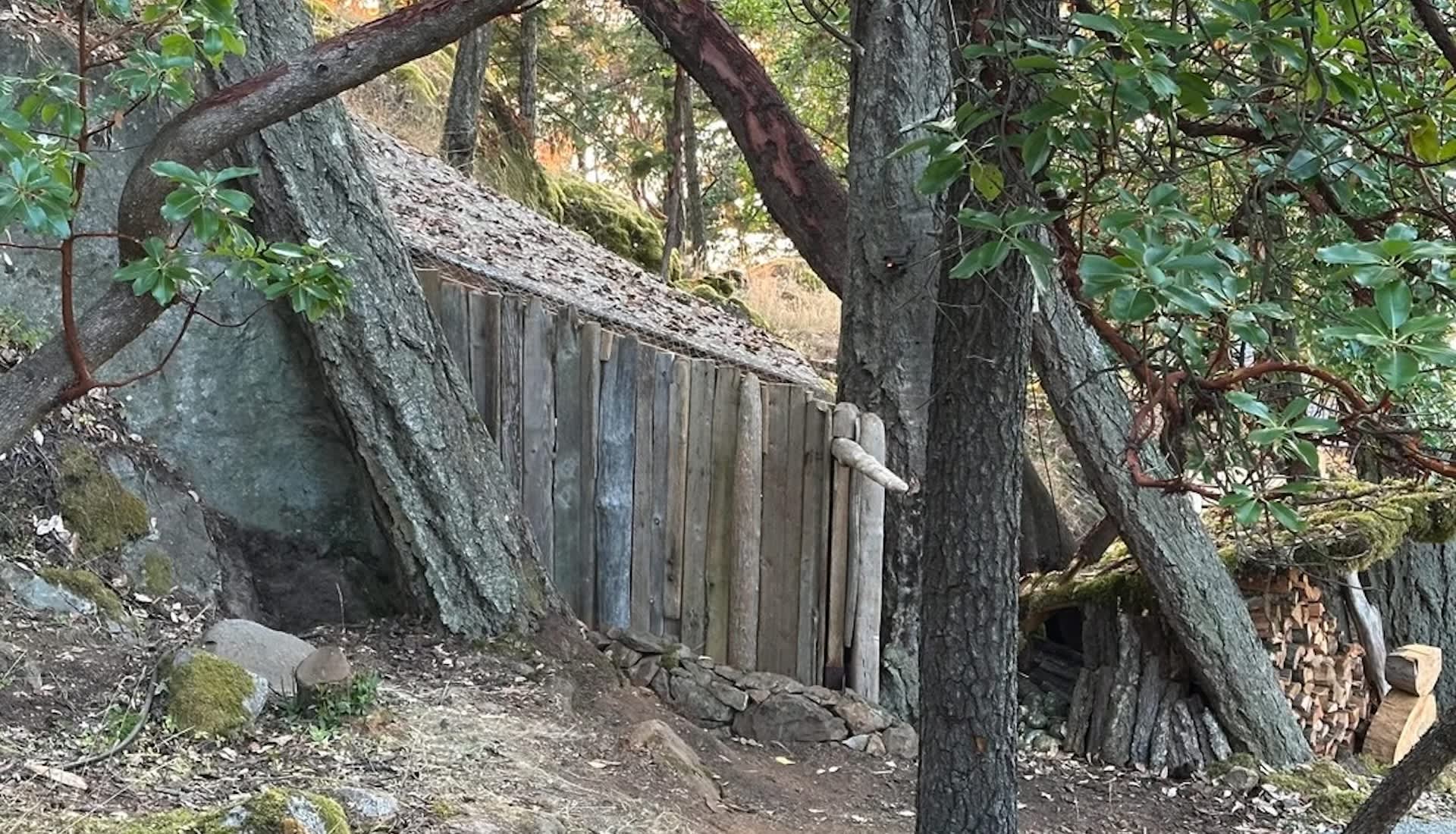 "A hidden entrance is between the cliff and the old growth fir tree, and the main entrance is below the big madrone tree," he shared in the Reddit post. "I'm so glad to finally have a place to store my tools and work with a roof over my head!"
