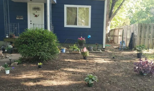 "My yard is very shady and grass couldn't grow," they explained. "So instead of forcing it, I brought in native rocks and stones to frame the yard and a bunch of plants."