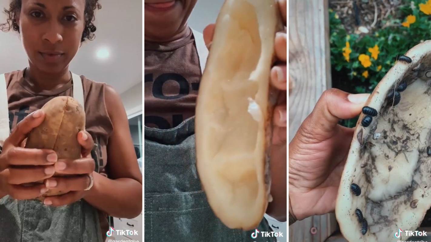 By carving out potatoes and leaving them in her garden overnight, Bailey creates a nontoxic way to trap pill bugs without killing them. She's then able to move the critters out of her garden, keeping them alive and saving her plants at the same time.