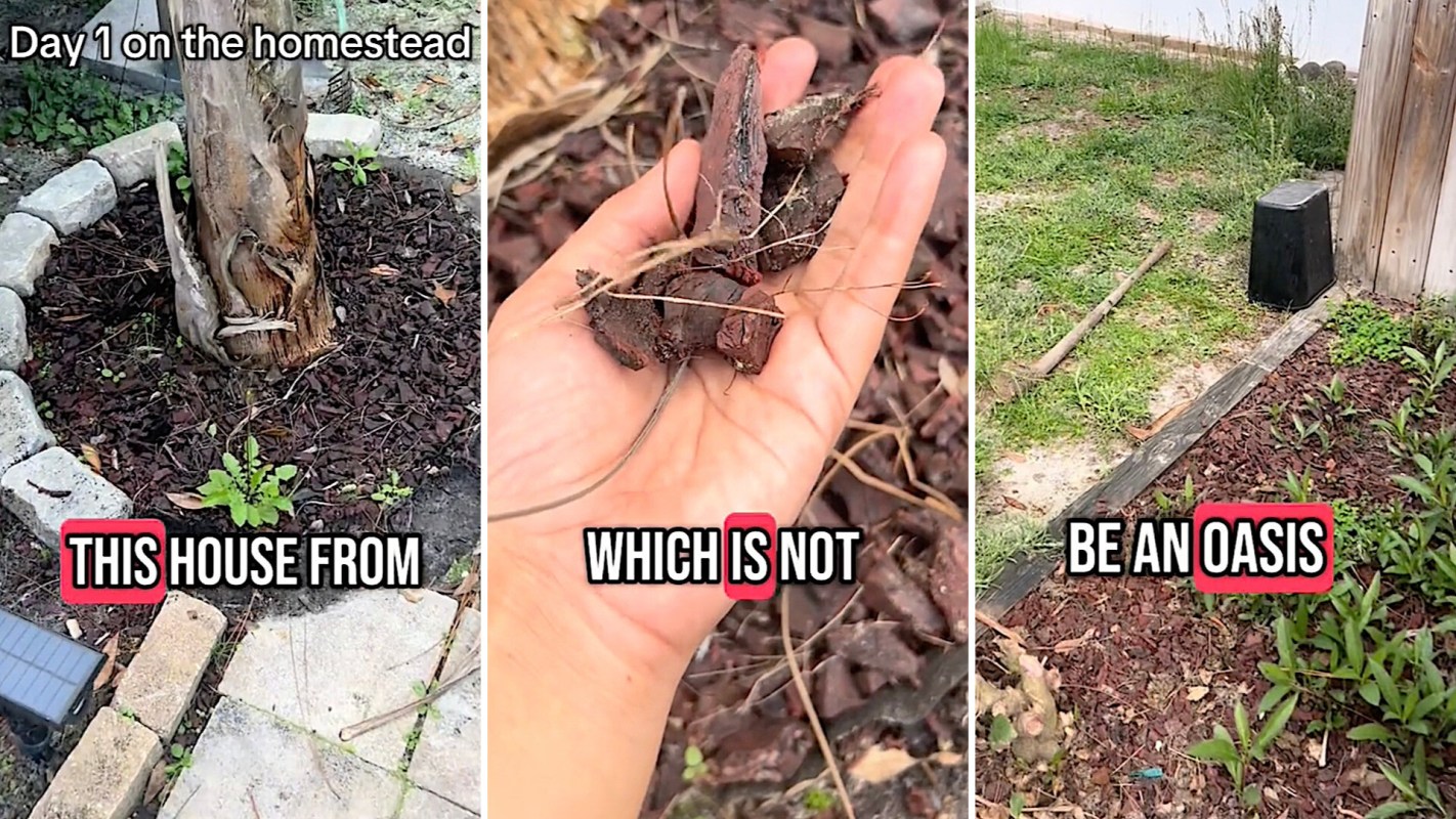 One TikTok creator, Wendi Darling (@lookawendibird), remained hopeful when faced with the irksome rubber mulch the previous homeowner had left all over the yard.
