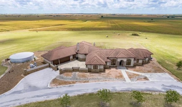 The post, titled "Thank God this Mediterranean mess is secluded in the country," showed an aerial view of a massive estate in rural Texas-style farmland. The home's terra cotta roof and sweeping driveways dominated the frame, bordered by endless grassland and, as many commenters noted, not much else.