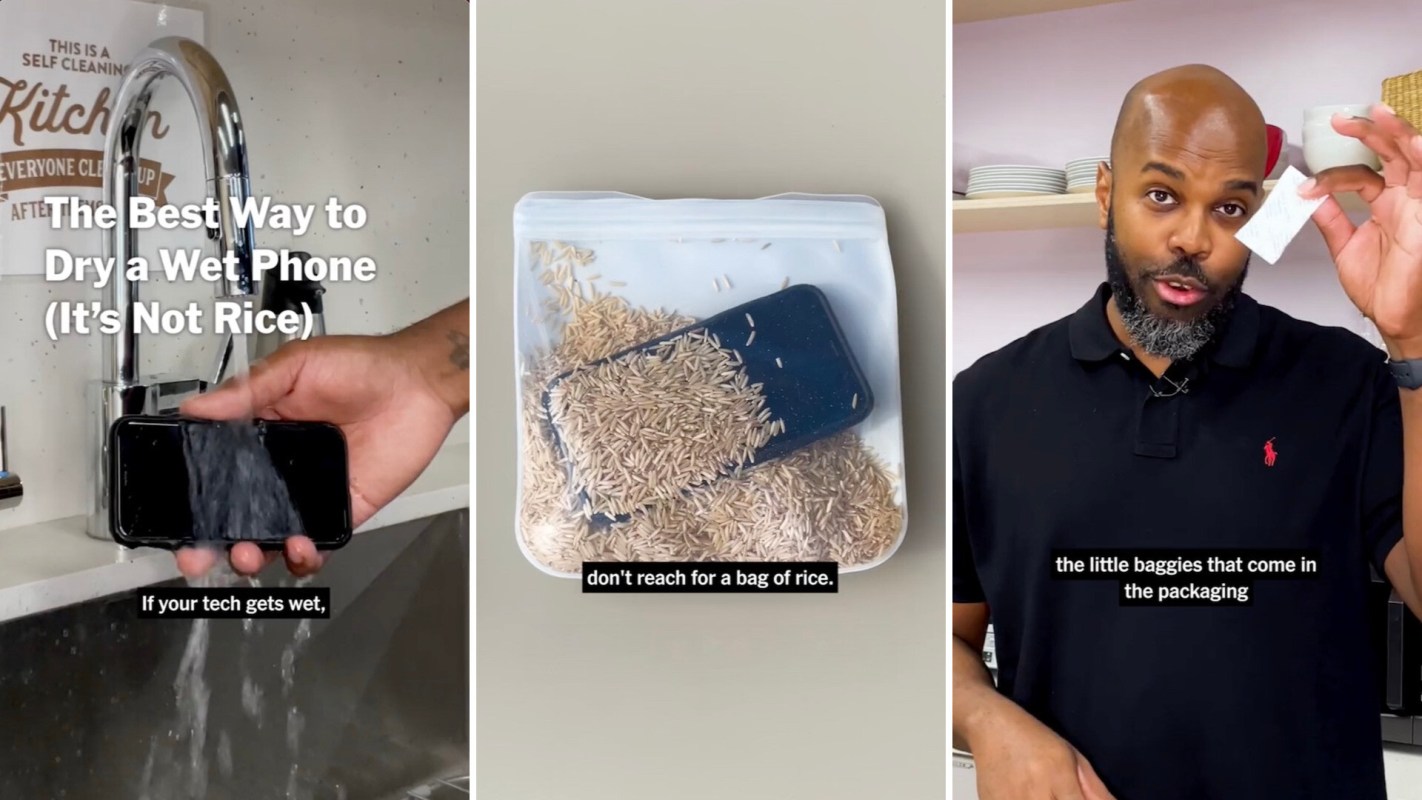 We've all been there: the awful moment when your phone slips into the sink or the toilet. And while the go-to fix has always been to toss it in a bag of rice, a tech expert on TikTok is giving a pretty innovative take: skip the rice and use something even better (and way less messy).