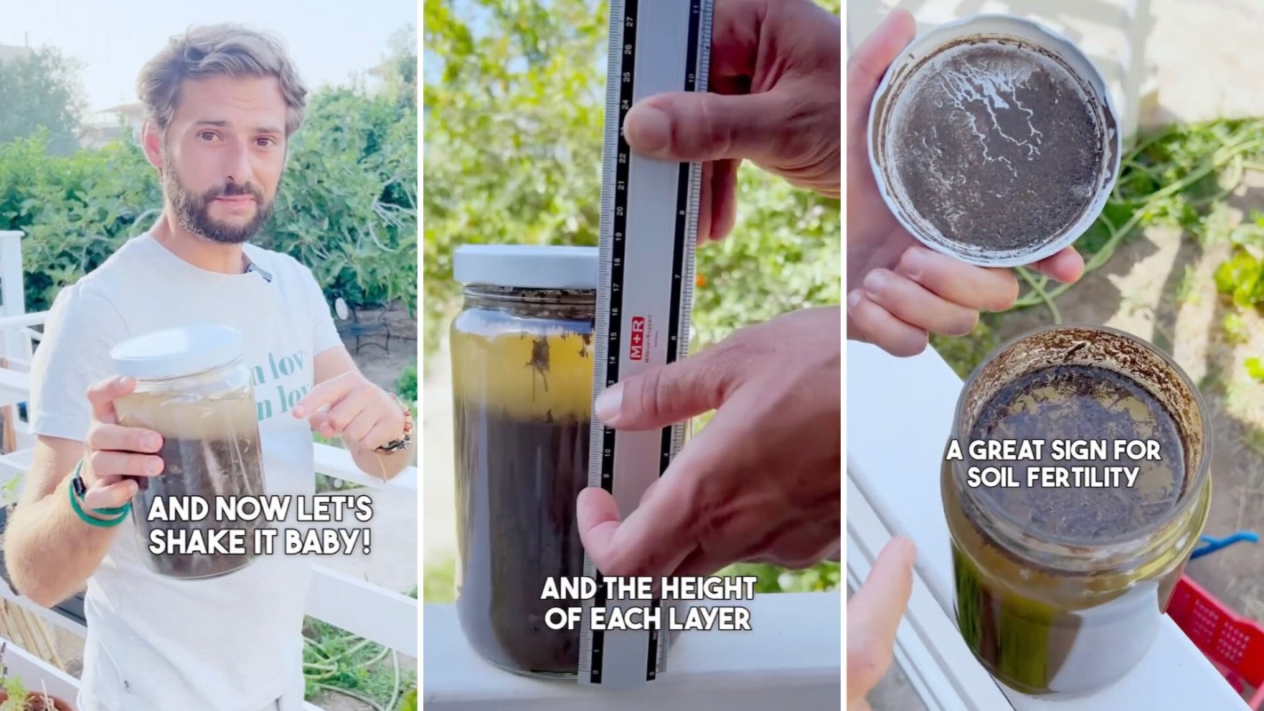 So, how can you tell what's what? Instagrammer Patrick (@thefrenchiegardener) has an easy trick to figure it out. All you need is a clear jar, some water, a ruler, and a few cups of your garden floor.