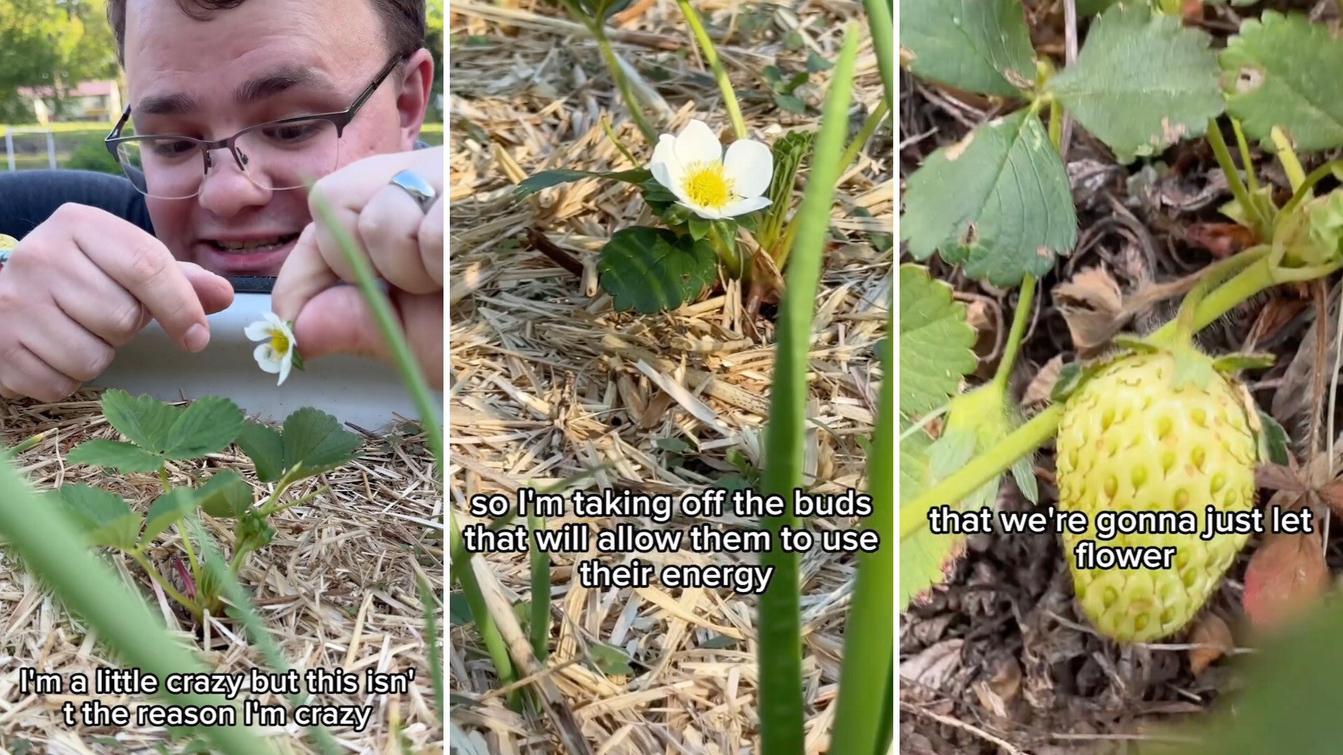 Joshua goes on to say that new gardeners may want to skip this hack and just let their plants produce strawberries: "If … you are looking at your strawberry plant and it has a flower, and you are getting excited, and you just need that adrenaline rush, that satisfaction of harvesting something and eating it and you can't … don't do it. You can let that flower turn into a strawberry. I want you to taste that strawberry."