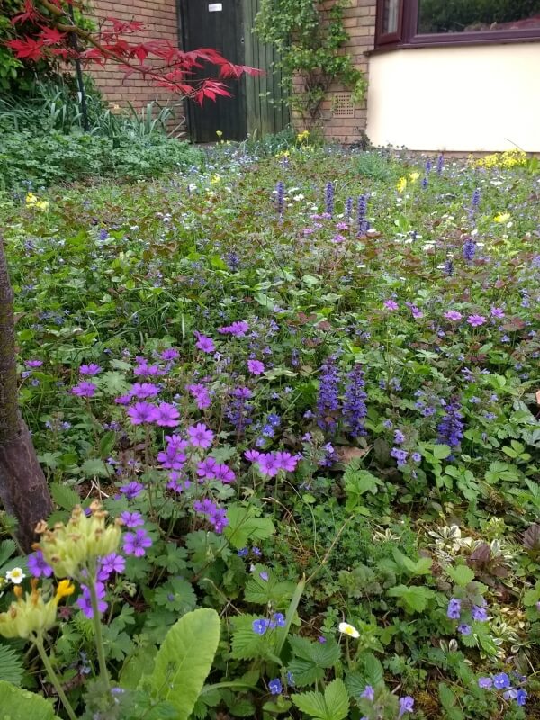 In the original poster's case, the forbs in question were a gorgeous assortment of flowers and other ground cover plants: geraniums, daisies, fritillaries, bird's foot trefoil, clover, and cyclamen. They shared half a dozen photos of the garden as it cycled through the seasons, including how it looked after being (infrequently) mowed. In a comment, they also explained the garden has been their mother's labor of love for nine or 10 years now.