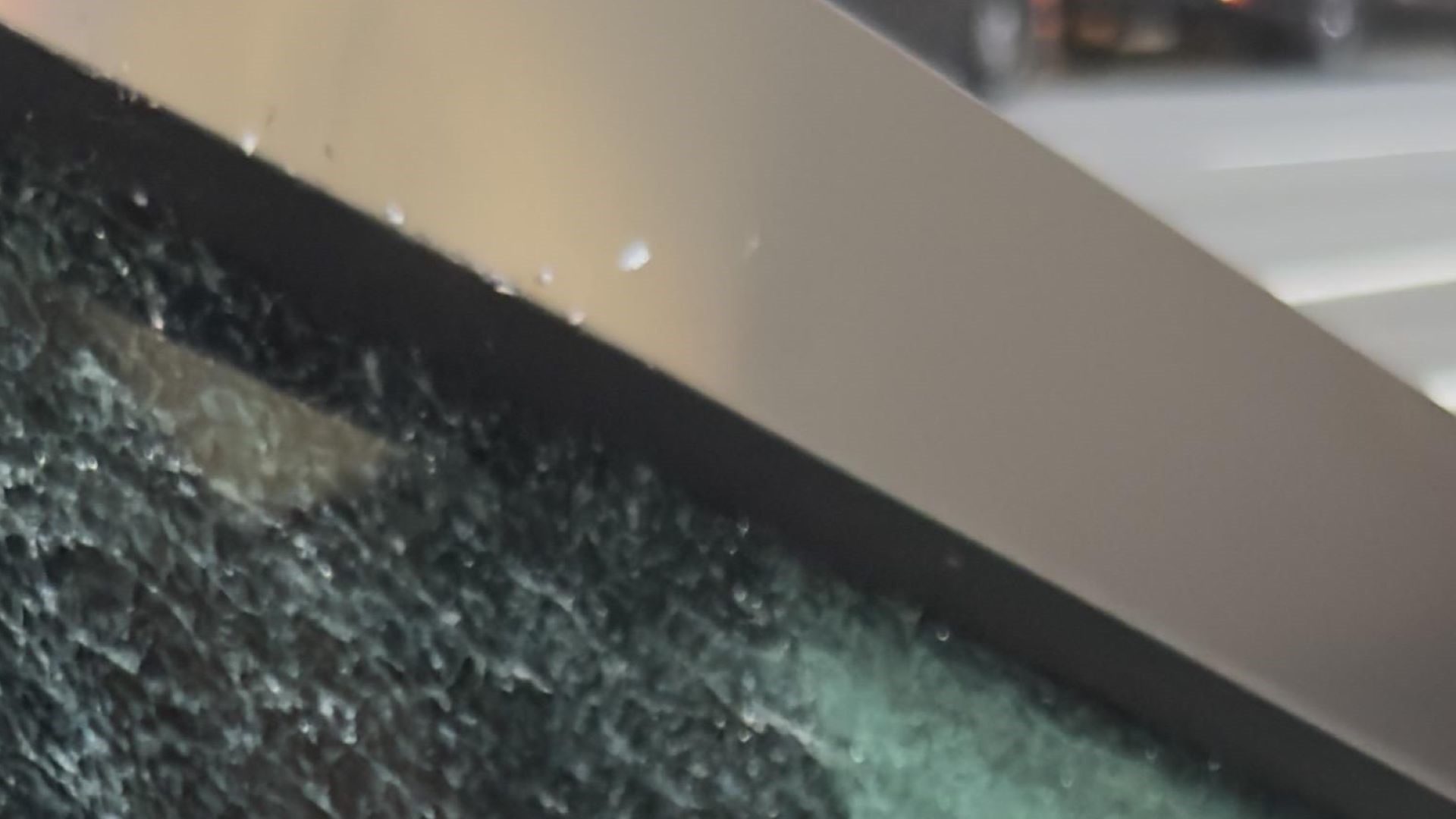 The image they posted shows a smashed window and broken glass in the mirror, with several fragments all over the door.