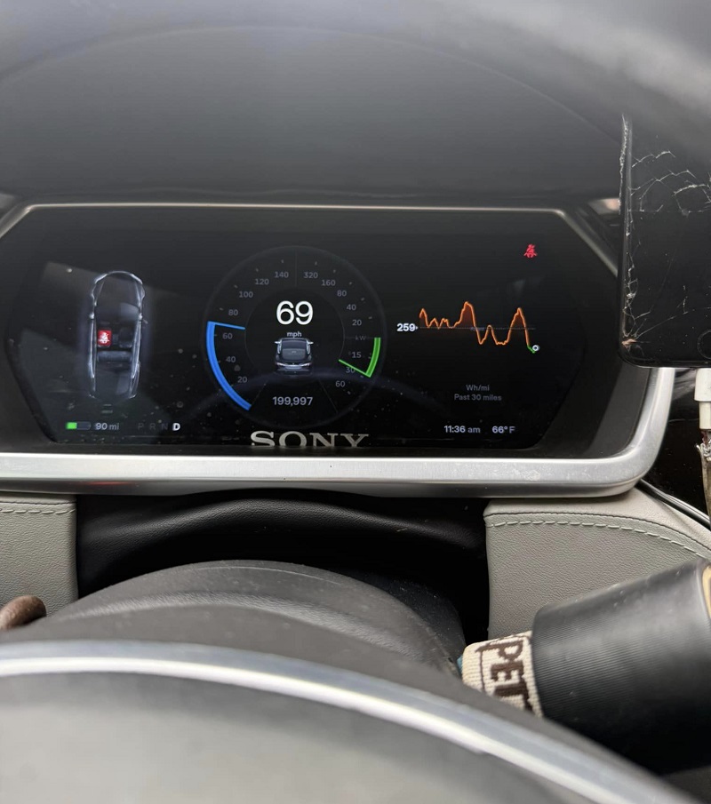 One club member posted photos of their 2012 Model S P85's dashboard, which showed the car was approaching the 200,000-mile mark.