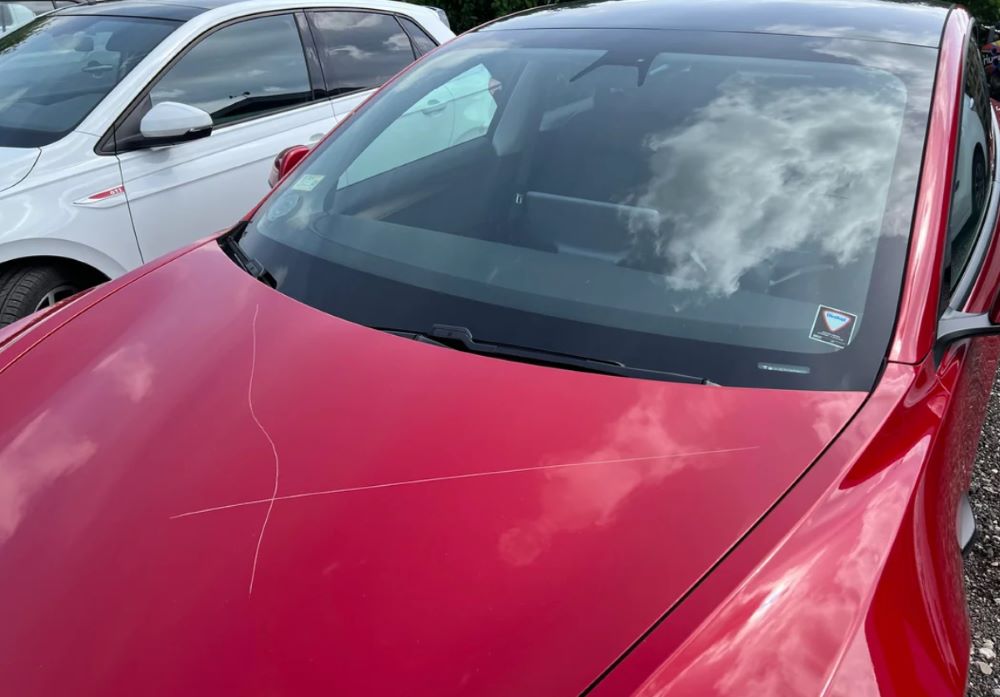 A Tesla driver in Denmark was frustrated to find a large "X" carved into the hood of their car, and they shared photos of the damage — and shoddy body shop paint job — to r/TeslaModel3.