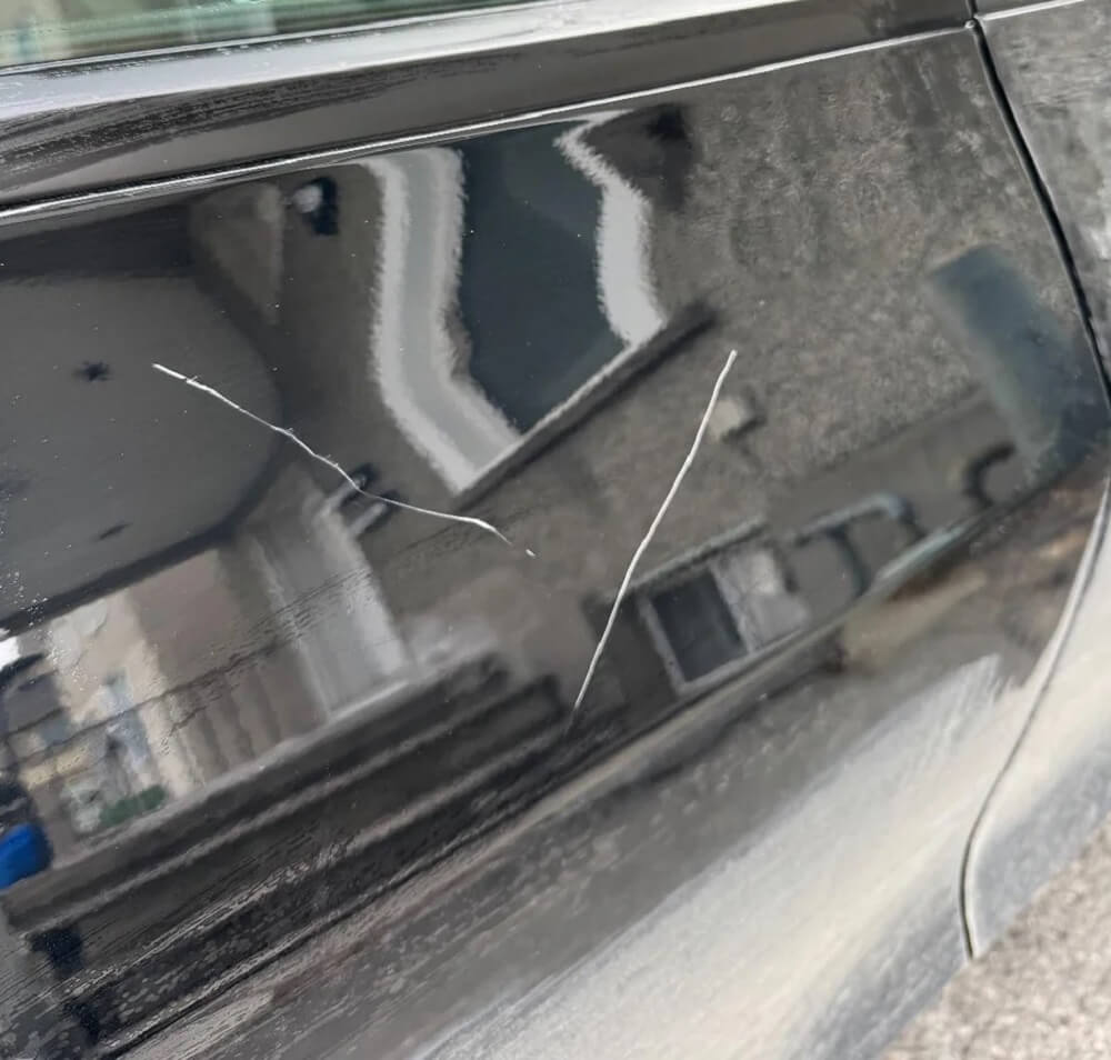 The Redditor explained that they had owned their Tesla M3 for three years without a single issue. They included two pictures that showcased what appeared to be significant key damage to one of their doors.