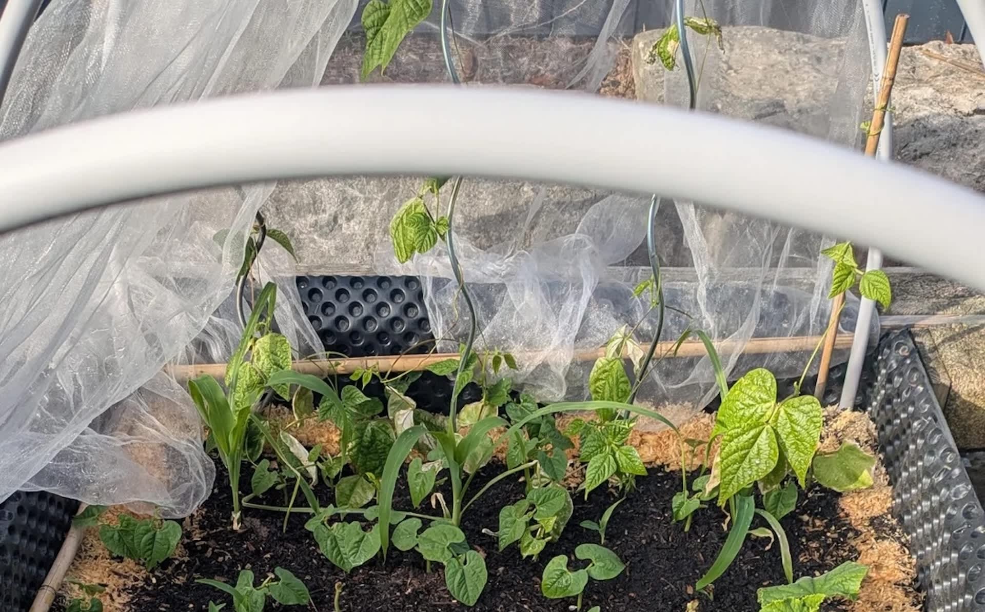 A home gardener is testing a time-honored planting strategy that pairs corn, beans, and squash in the same bed, and the early results already look promising.