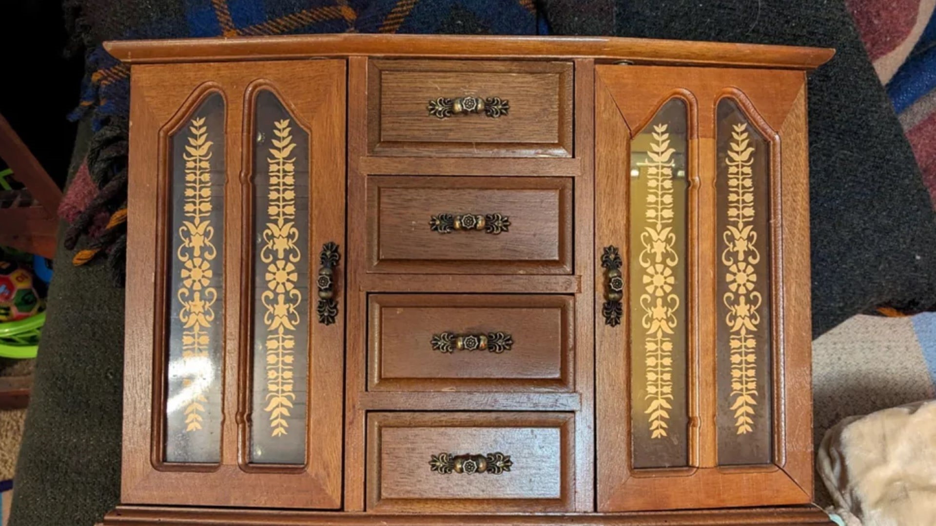 Posting on the subreddit r/ThriftStoreHauls, the shopper shared an image of an intricate wooden jewelry box with several drawers and compartments. The box cost just $5 and contained several added extras that the shopper was not expecting.