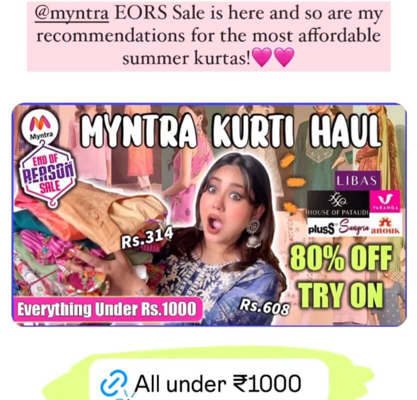 One Redditor posted in r/InstaCelebsGossip sharing the thumbnail for a YouTube video for a popular Indian creator. "What is the obsession with the kurti haul every time when she is out of [an] idea! I feel her idea is of makeover and haul only now including monthly favorites!"
