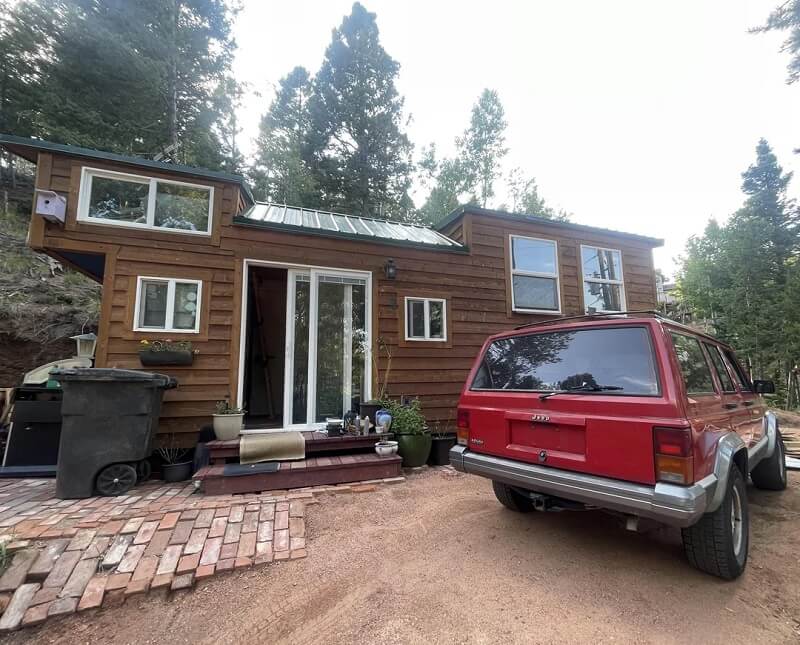 "The original project: tiny house, 1/8 acre land, 50amp hookup, shed for water cistern, grading of hill and a Jeep Liberty, $55,000," they said in response to a question about the cost of the setup.