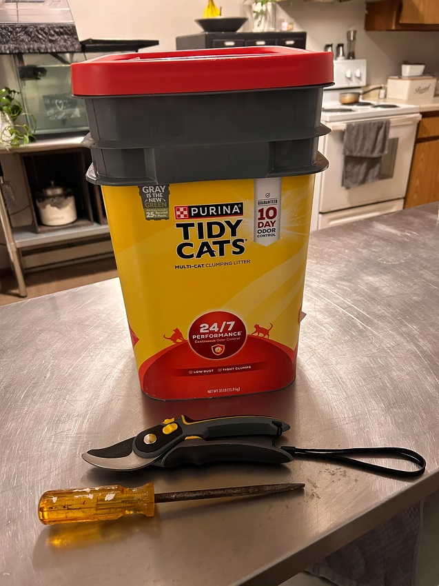 A Reddit user on r/upcycling shared their clever trick to upcycle old cat litter containers.