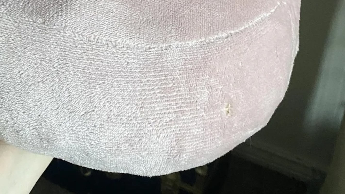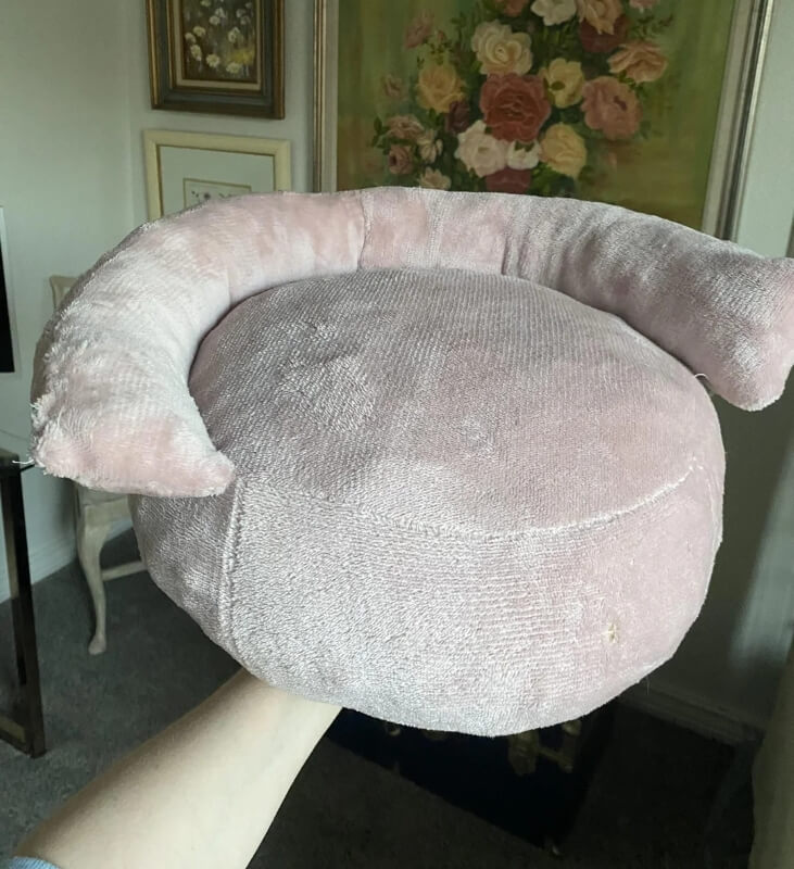 "Just two circles [and] a long rectangle for the base, and then two long rectangles for the top," the OP shared, describing how they had cut the old blanket to form the bed's exterior.