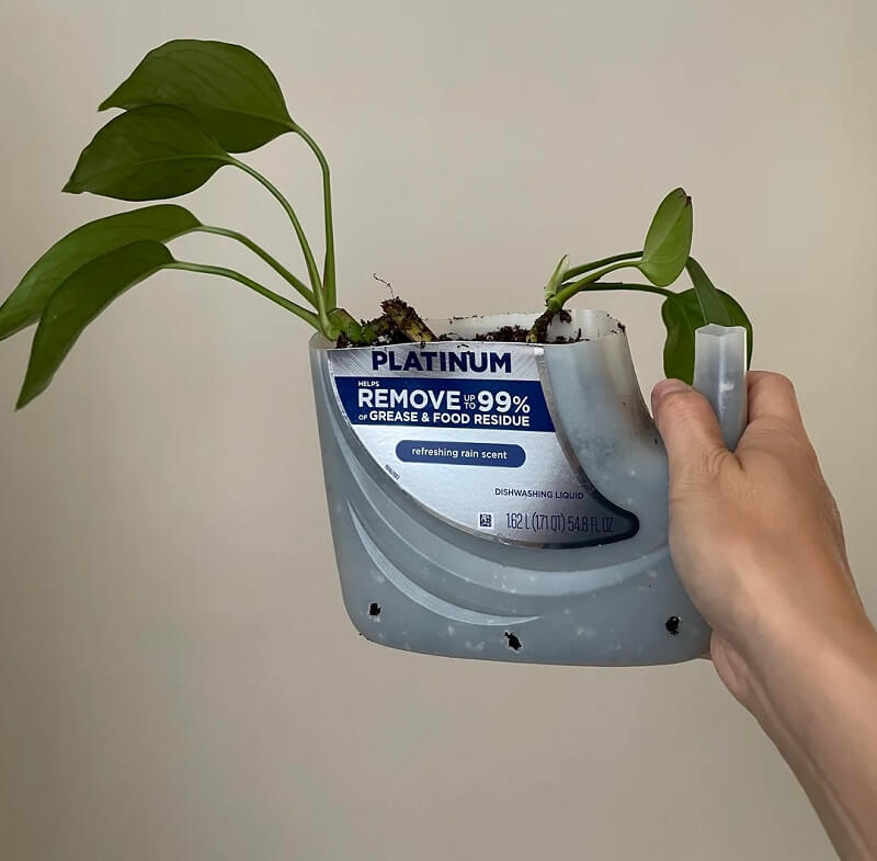 They posted a photo of their innovative solution in the subreddit r/upcycling. After thoroughly rinsing out the jug, they cut off the top and planted a houseplant in some soil in the bottom half.