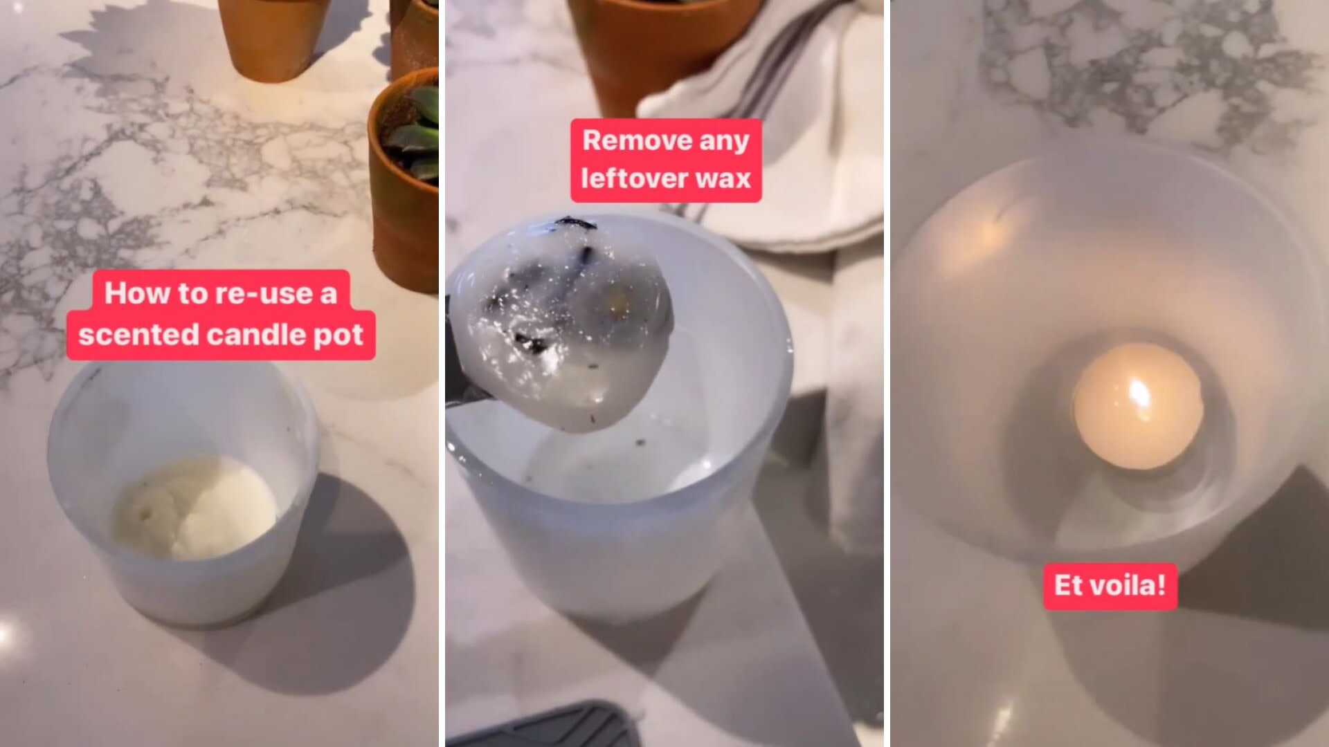 "Recycle and repurpose! Love this simple and very fast home-hack to reuse a scented candle pot," Liz's caption on the demonstration video reads.