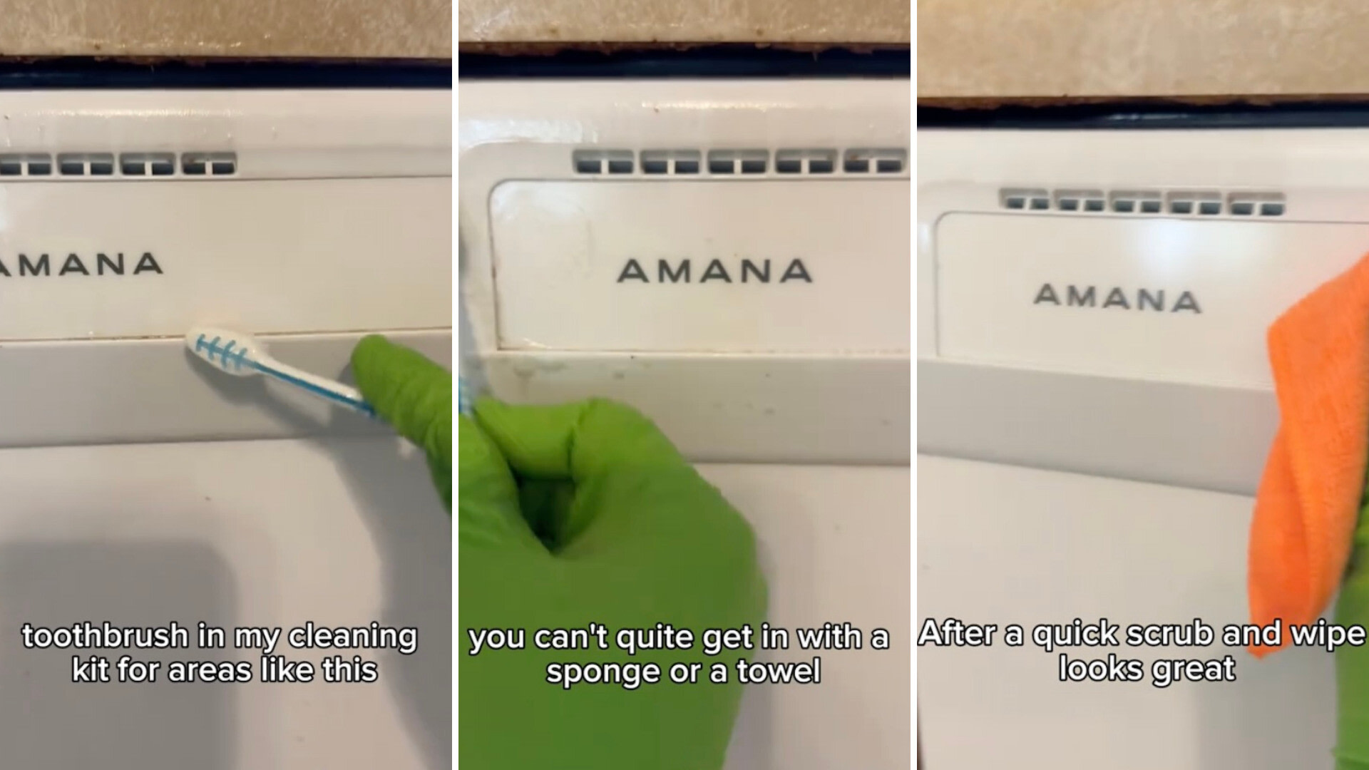 Using just a toothbrush and cleaning spray, he was able to effortlessly remove a strip of dirt from the crevices on the front of his dishwasher.