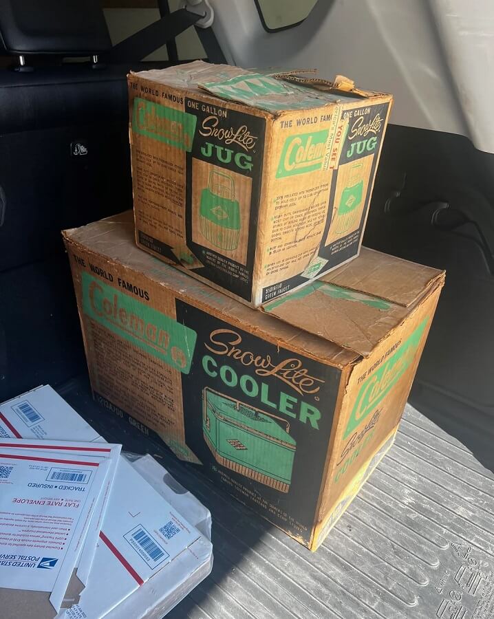 "Found two vintage 1960s Coleman coolers in their original boxes! I paid $50 for the pair," the OP wrote.