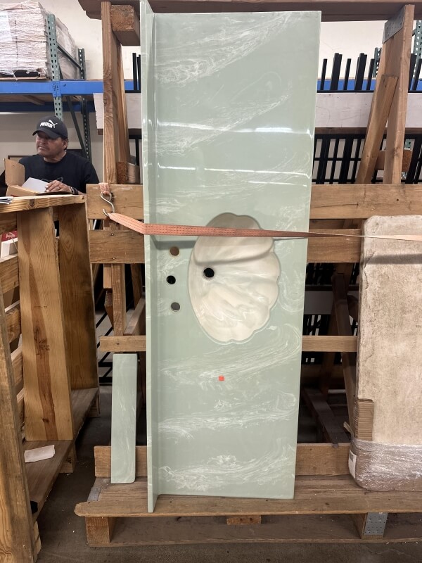 The beautiful mint-green bathroom piece was in great condition and cost the homeowner just $80, providing them with significant savings while also giving them a vintage look for their bathroom.