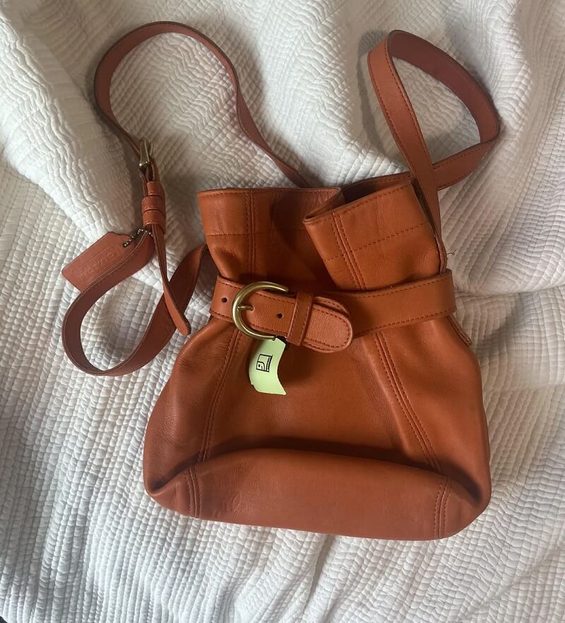 The beautiful brown leather bag was produced by Coach in the '90s, and the style appears to be from the Soho collection, with many online sellers referring to it as a belted pouch bag. This poster scored the bag for less than $20, while many similar bags found on eBay or Poshmark are between $150 and $300.