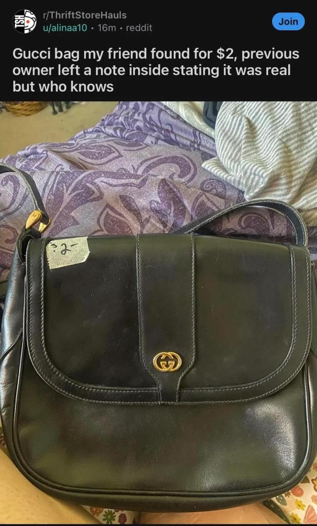 Thrift shopping is a great way to score incredible deals, and one shopper's Goodwill find came with an unexpected surprise. A Reddit post in the r/ThriftStoreHauls community revealed a vintage Gucci bag scored for just $2 — plus, it came with a note inside.
