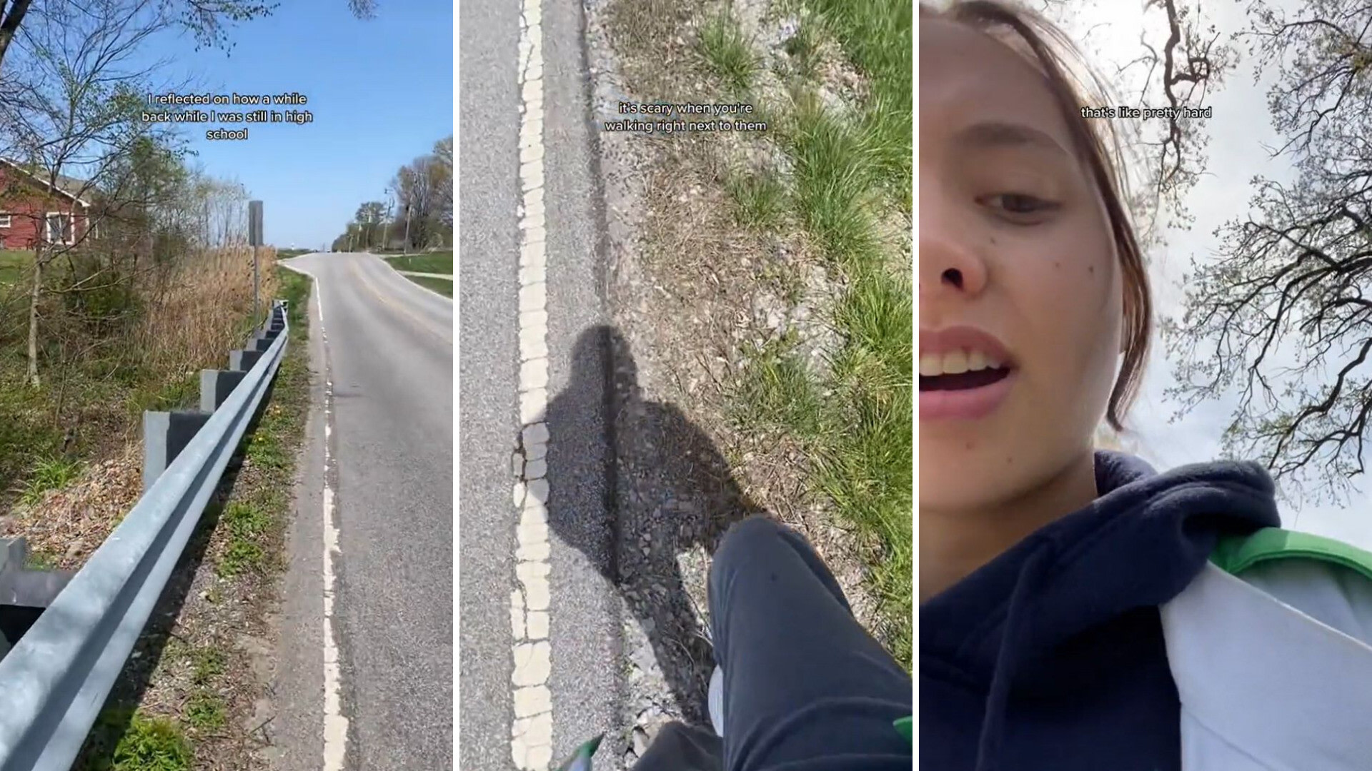 Midwest Mess (@tangtown) wanted to see if she could reduce her car dependence while living in the area and filmed herself trying to make a walkable journey of under two miles. She soon discovered that going on foot was far more difficult than it needed to be.