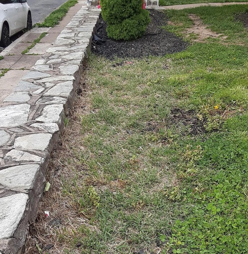 "I want to make a little flower bed along the wall, but a few years ago when we did it we used weed barrier fabric," they detailed in the comments. "I dug down a bit and there is also rubber mulch on top of the fabric. So it's fabric, rubber mulch, then weeds. Apparently they grew right through the fabric. In the picture you can kind of see where the old bed used to be. Can I just pull the whole thing up?"