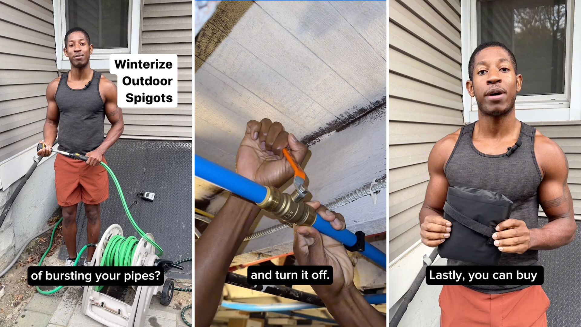 Kyshawn of Weekly Home Check (@weeklyhomecheck) presented this tip in a video that was posted in mid-October, just when the fall weather really started to set in. "Did you know that if you don't drain your spigots for winter, you risk the possibility of bursting your pipes?" he asked.