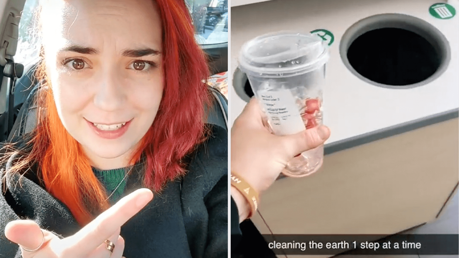 Also, as the TikToker points out, the Starbucks "recycling" and "landfill" receptacles both collect in the same bin. No separation is actually happening, even though the bin creates the illusion that it is.
