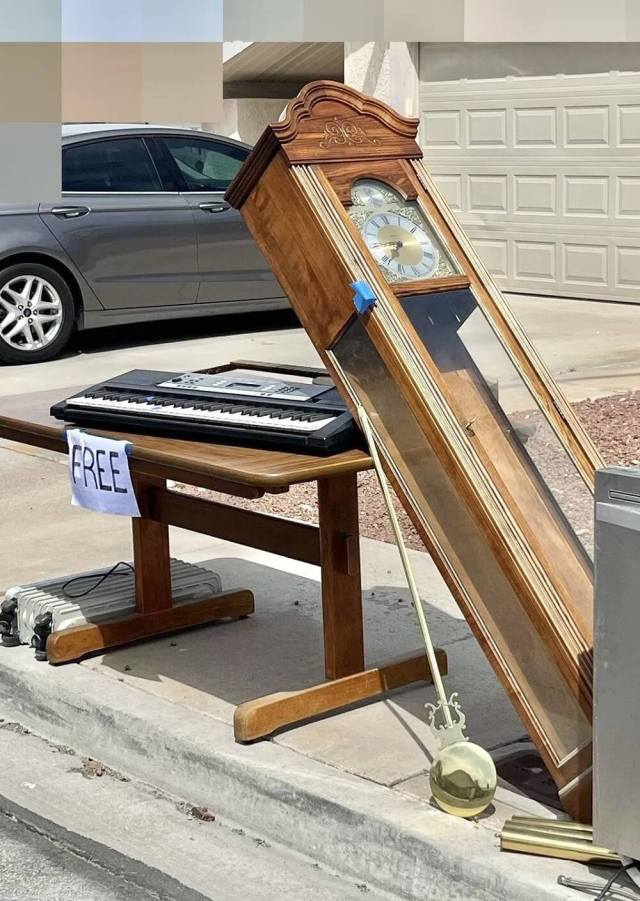 A savvy thrift-shopper made the find of their life completely by accident after spotting a veritable treasure trove sitting on the curb — complete with a piano keyboard, a wooden desk, and a full standing grandfather clock.