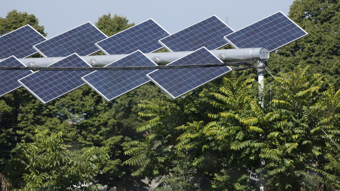 The solar panels will be raised off the ground to allow farm equipment to perform normal functions, and the panels will shift position to allow the peach trees to get the sunlight they need.