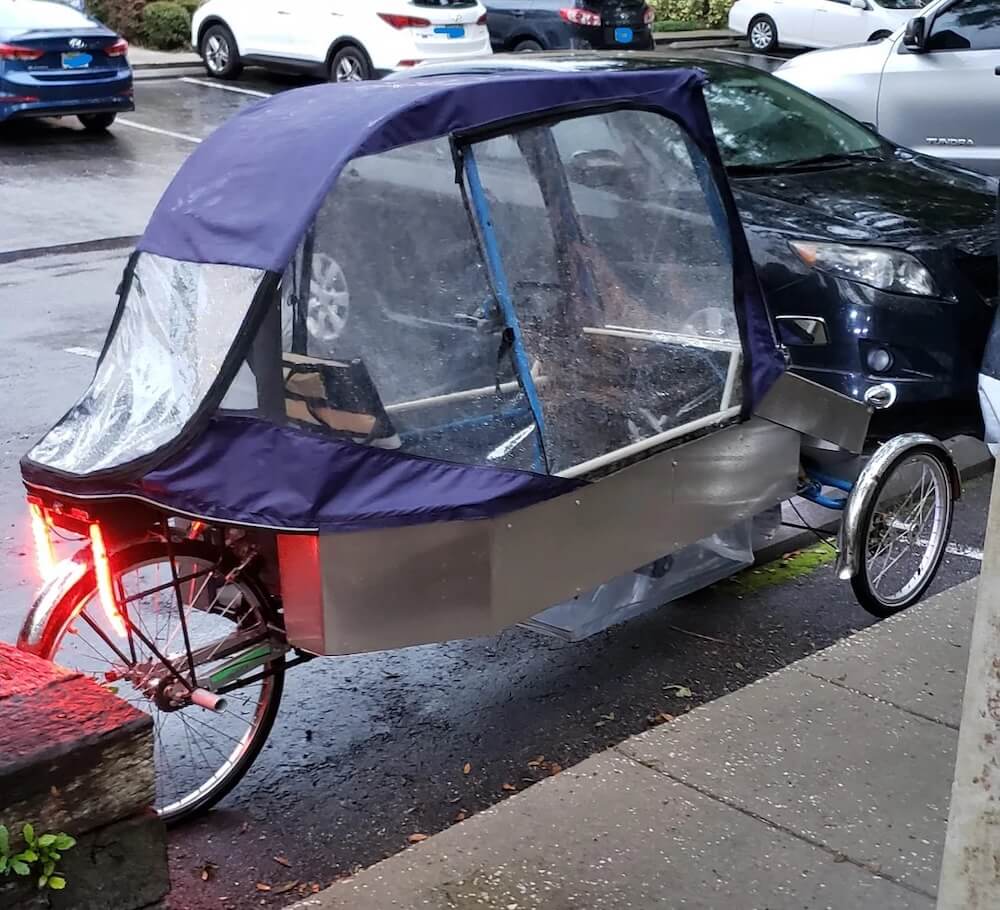 Although the original poster claimed that the contraption is technically road legal and fits within standard bike lanes, its legality is a bit murky.